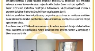 NOTA DE PRENSA La Unidad Ejecutora Red de Salud Ayacucho Norte – Huanta (UERSAN) sostuvo una importante reunión técnica con la Unidad de Producción de Servicios de Salud (UPSS) de Nutrición, en la cual se establecieron acuerdos clave orientados a fortalecer los servicios de nutrición, mejorar la calidad de atención …